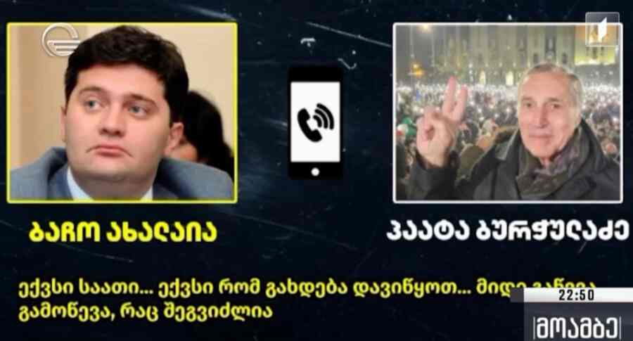 ტელეკომპანია „იმედი“ პაატა ბურჭულაძისა და ბაჩო ახალაიას სავარაუდო სატელეფონო საუბრის აუდიოჩანაწერს ავრცელებს. ჩანაწერის ავთენტურობა დადასტურებული არ არის.